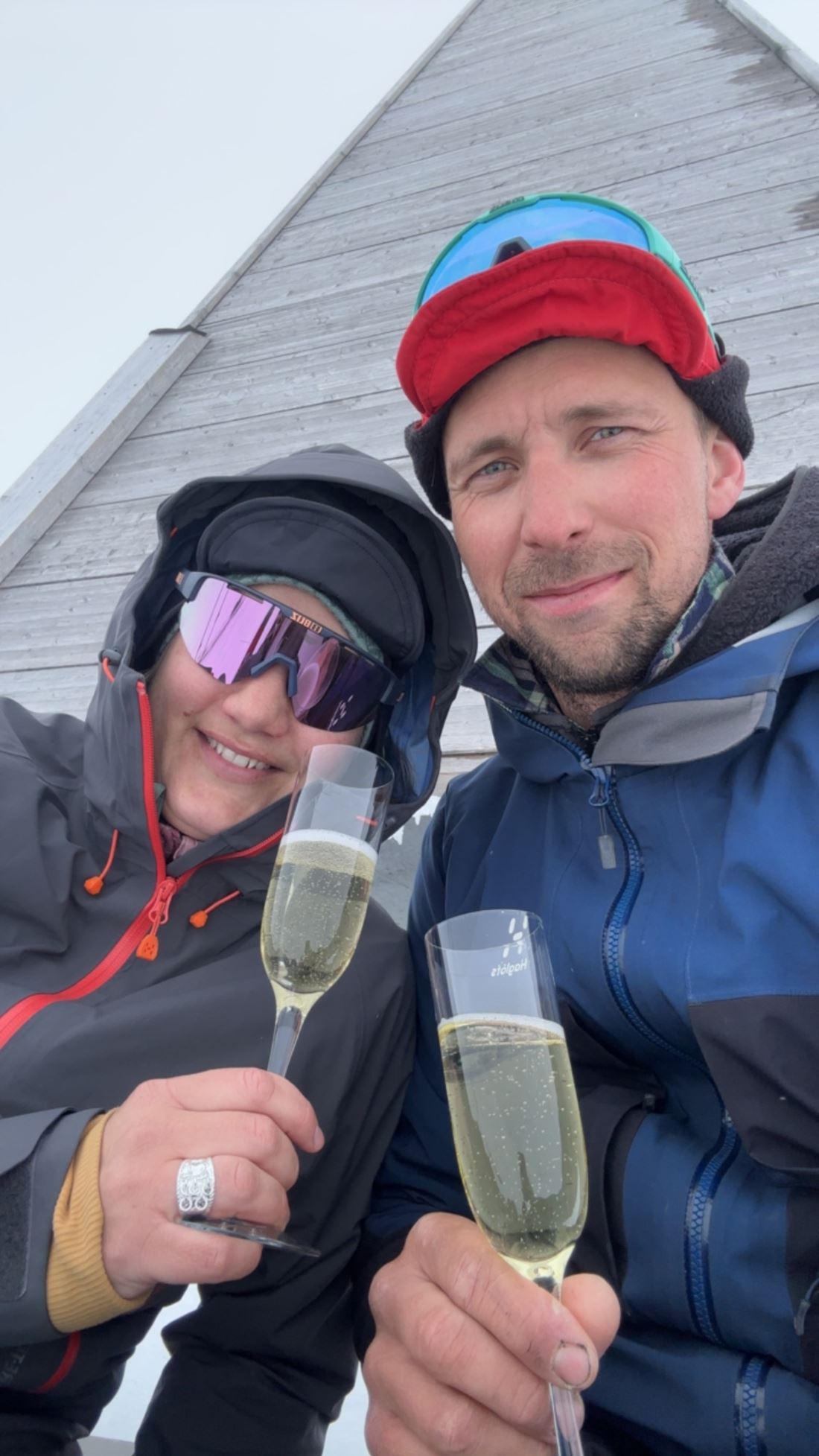 Nu ska vi tillsammans skåla in det förhoppningsvis nyvigda paret. Här åker vi bandvagn alt skidor ner till trädgränsen där vi samlas för en brudskål och något tilltugg såklart. Skidtåg tillsammans ner? Hur långt skidtåg kan vi tillsammans få till?